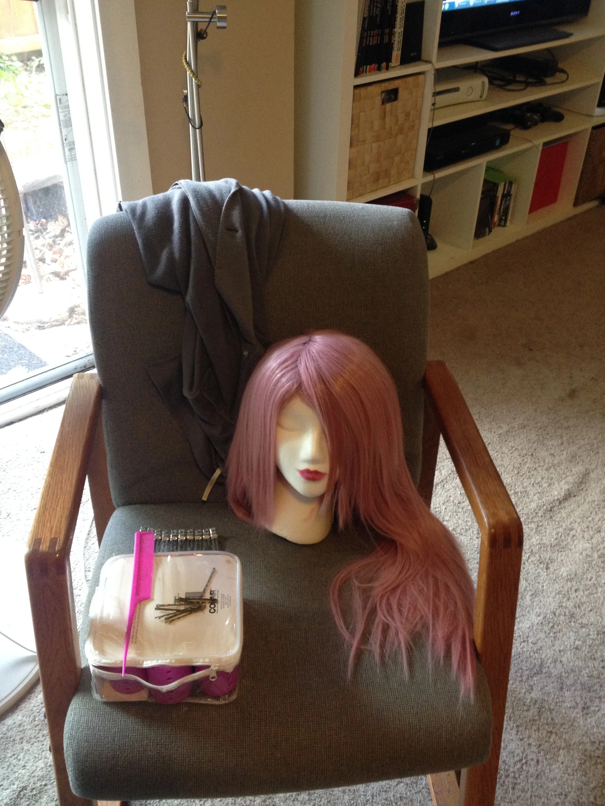 So, I have a wig that’s the perfect color. And I have a top that will make an excellent upper half to a Rose Quartz dress. To finish it up, I’ll just need to make or get a skirt, make a little star piece, and fix up the wig. (If I have time, I also wanna make a pink sword.)