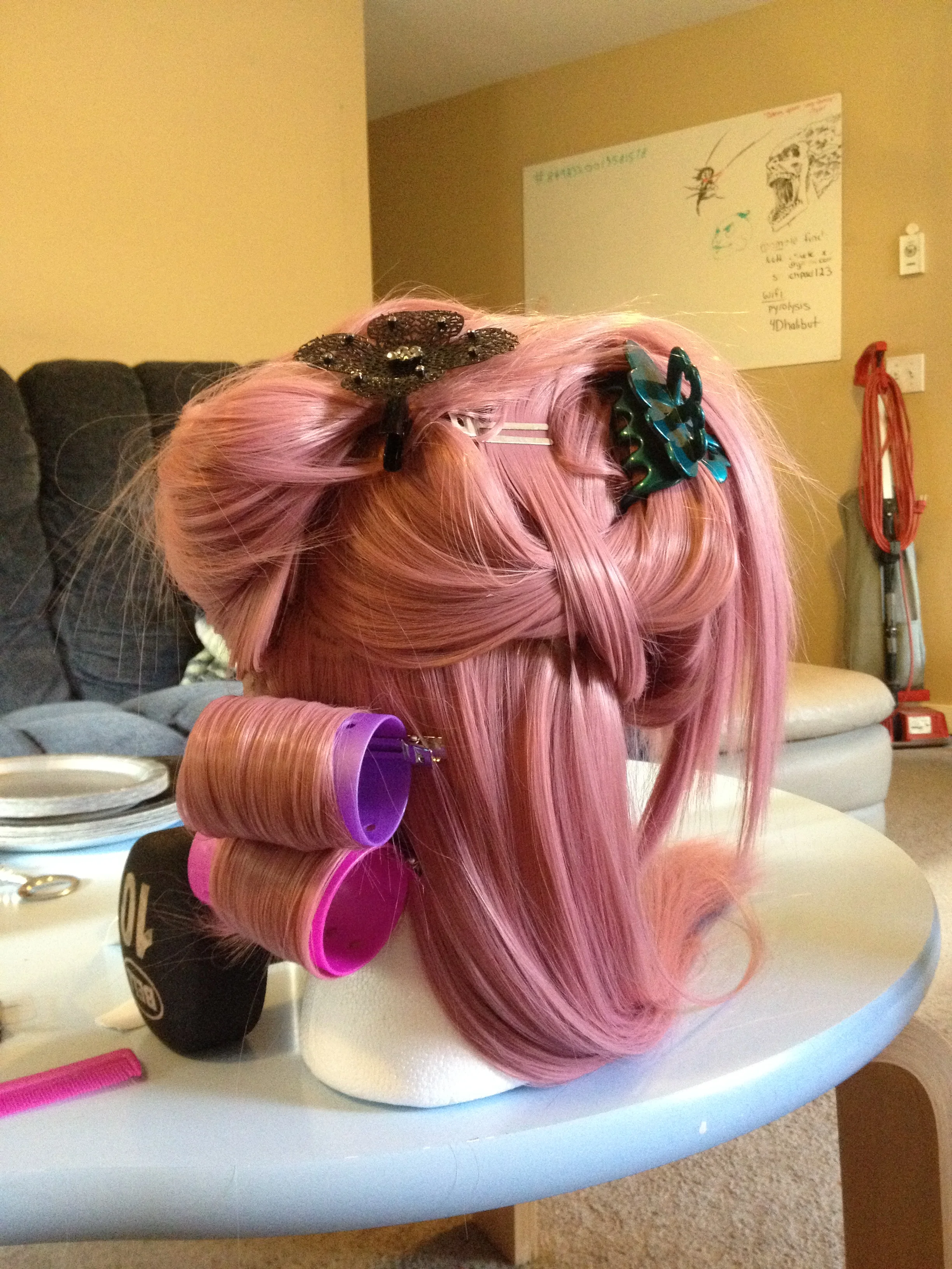 And then I’d clip it shut. I’m not sure if all synthetic wigs are as slick as mine, but the hairspray I used definitely made it easier to work with just by making the hair stickier.